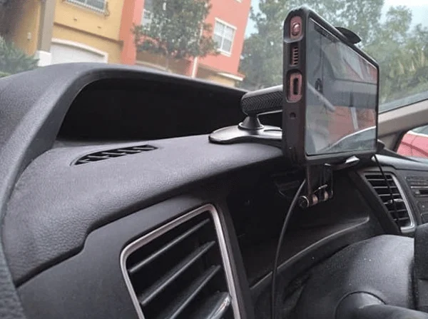 This holder works great in our vehicle. It can be mounted on the dash board. It works well and has been holding up so far. There is no adhesive so it can be moved around according to the drivers preference as to placement. Like is so much that we are planning to purchase a second one for our other vehicle.